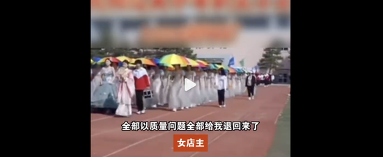 5月2日,据深圳广电集团都市频道《第一现场》栏目报道:一店主称沈阳一职业技术学校,60多个学生4月底集体网购衣服,参加完运动会后集体以“质量问题”为名退货退款,自己收到衣服后看到衣服上都有草,且学生们退款导致店铺被封,损失大概有8000元 。